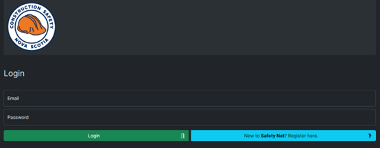 Step 5: Go back to https://constructionsafetynsonline.ca/safetynet/. Use your email and password to login.